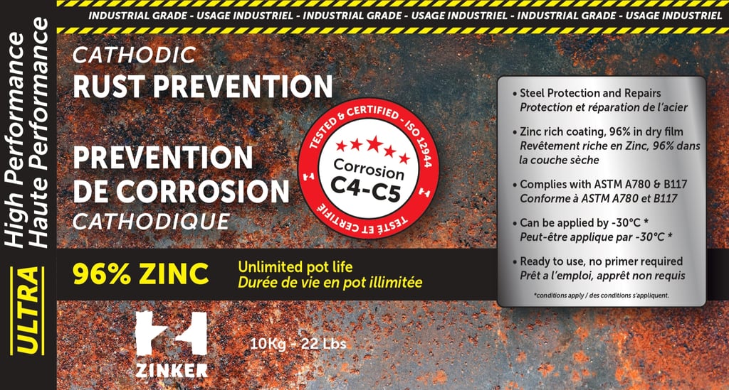 Zinker is a premium, industrial-grade zinc-rich coating engineered for superior corrosion prevention on steel structures and surfaces. Boasting an impressive 96% zinc content in the dry film, derived from ultra-pure 99.995% stabilized zinc, it delivers unmatched cathodic protection, often called "cold galvanizing.
