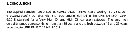 In 2019, the globally renowned Spanish laboratory TECNALIA awarded ISO 12944 Class C5 certification to the manufacturer's formula, under reference TU 2312-001-61702992-2009
