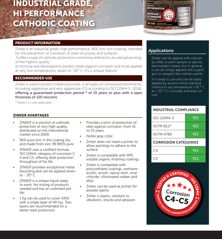 With 96% zinc, you’re not just meeting industry minimums, you’re setting a higher benchmark that approaches the protection of hot-dip galvanizing, but with the flexibility of on-site application. It’s the next level of reliability for industries that can’t afford compromise.